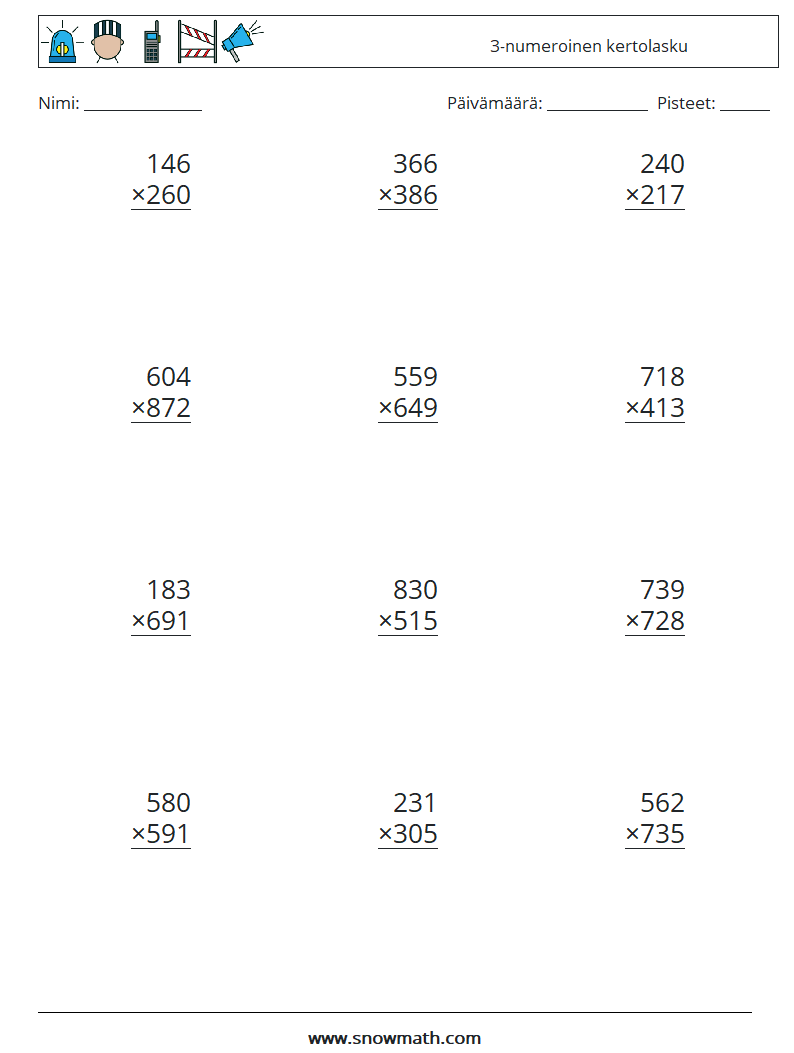 (12) 3-numeroinen kertolasku