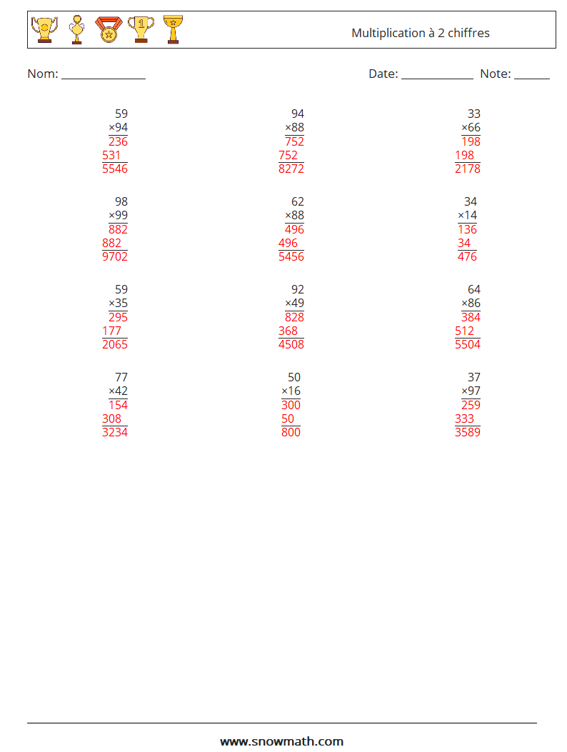 (12) Multiplication à 2 chiffres