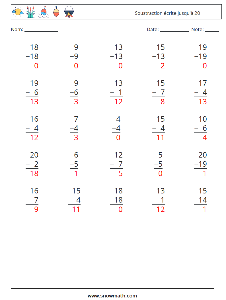 (25) Soustraction écrite jusqu'à 20