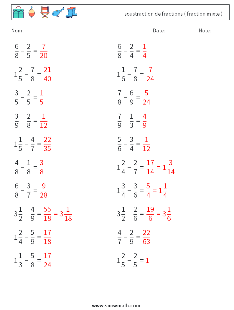 (20) soustraction de fractions ( fraction mixte )