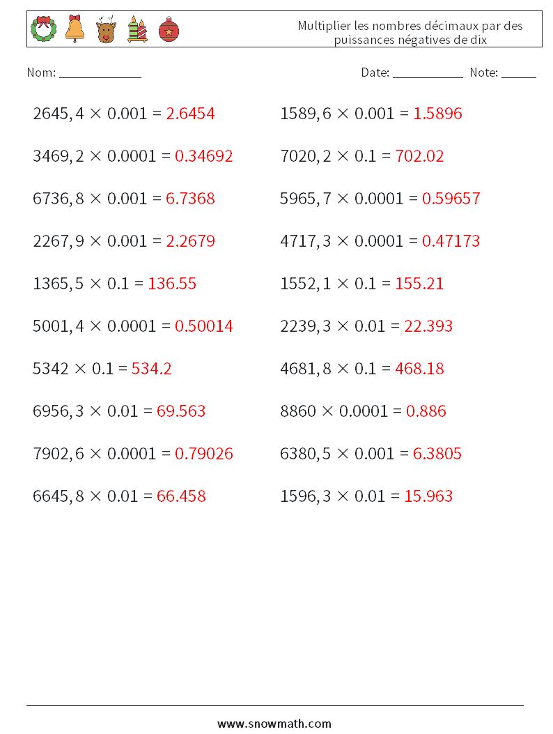 Multiplier les nombres décimaux par des puissances négatives de dix