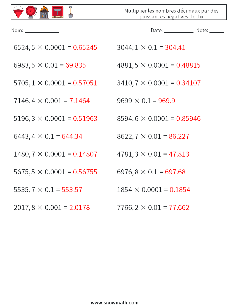 Multiplier les nombres décimaux par des puissances négatives de dix