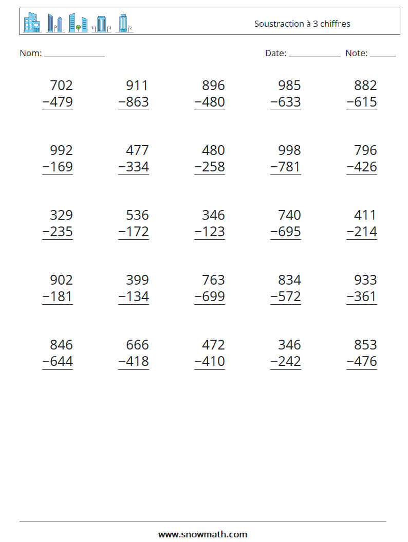 (25) Soustraction à 3 chiffres Fiches d'Exercices de Mathématiques 18