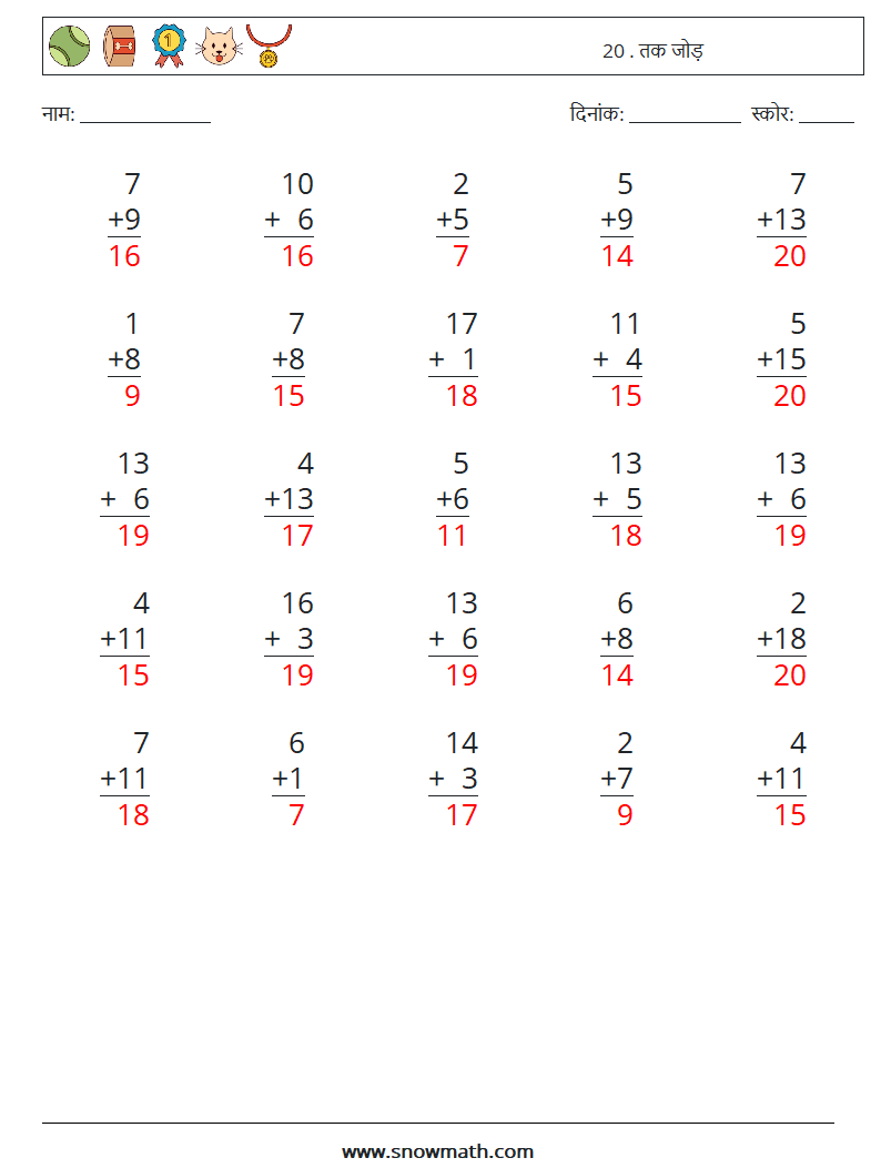 (25) 20 . तक जोड़