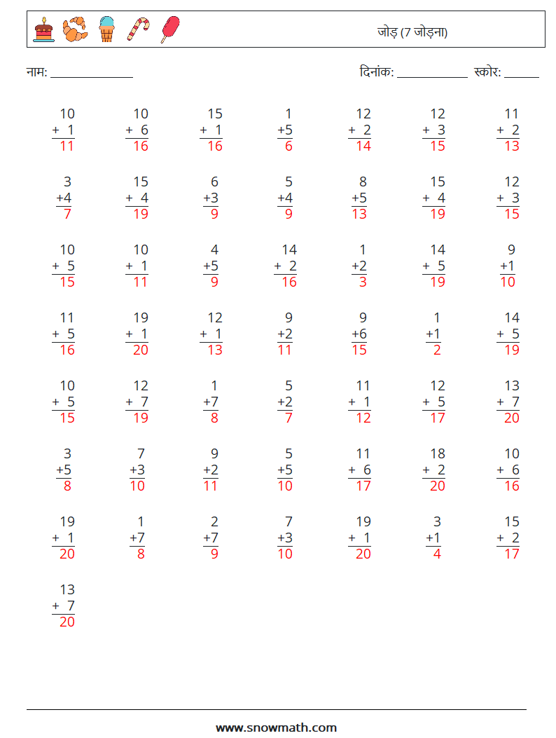 (50) जोड़ (7 जोड़ना)