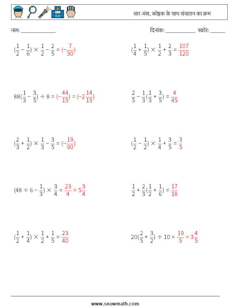 (10) चार अंश, कोष्ठक के साथ संचालन का क्रम