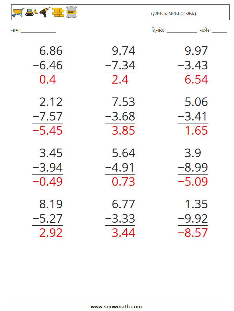 (12) दशमलव घटाव (2 अंक)