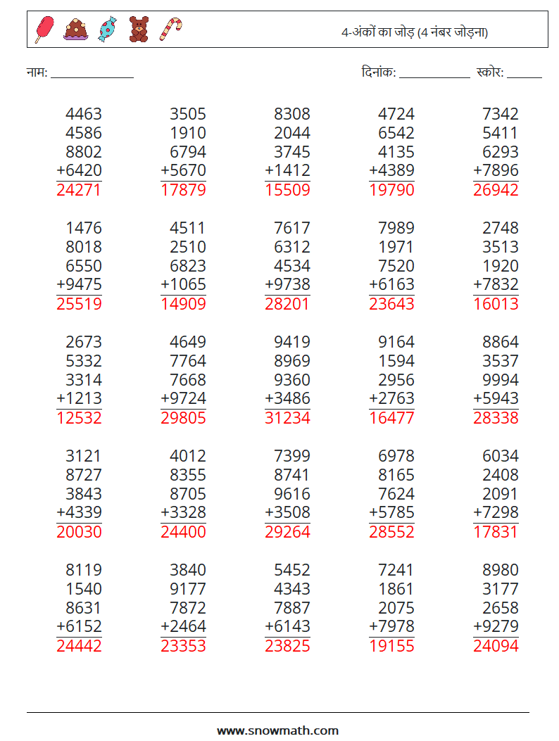 (25) 4-अंकों का जोड़ (4 नंबर जोड़ना)