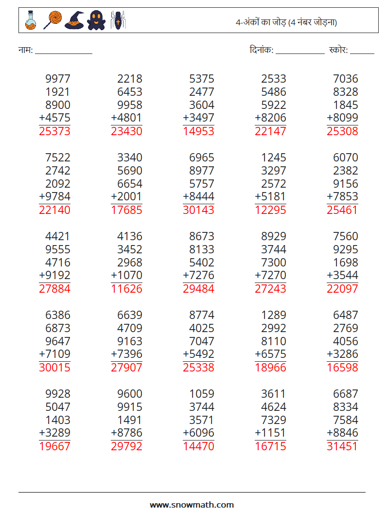 (25) 4-अंकों का जोड़ (4 नंबर जोड़ना)