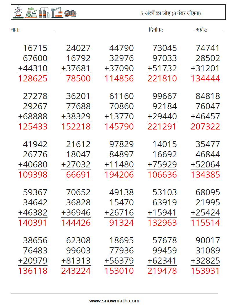 (25) 5-अंकों का जोड़ (3 नंबर जोड़ना)