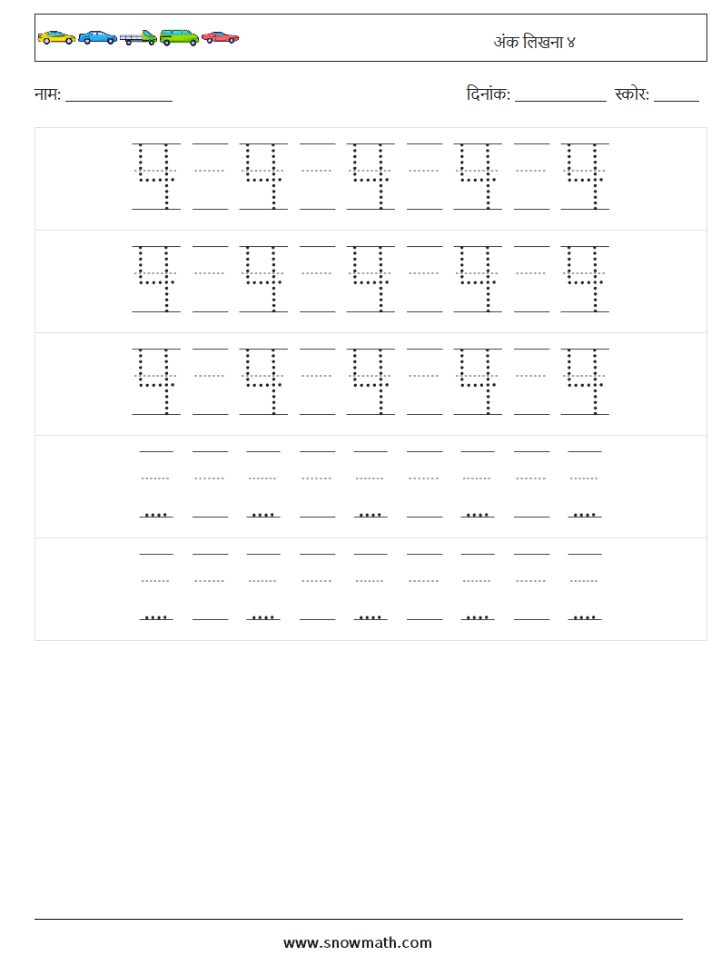 नंबर 4 लिखना सीखें, मुफ्त गणित कार्यपत्रक