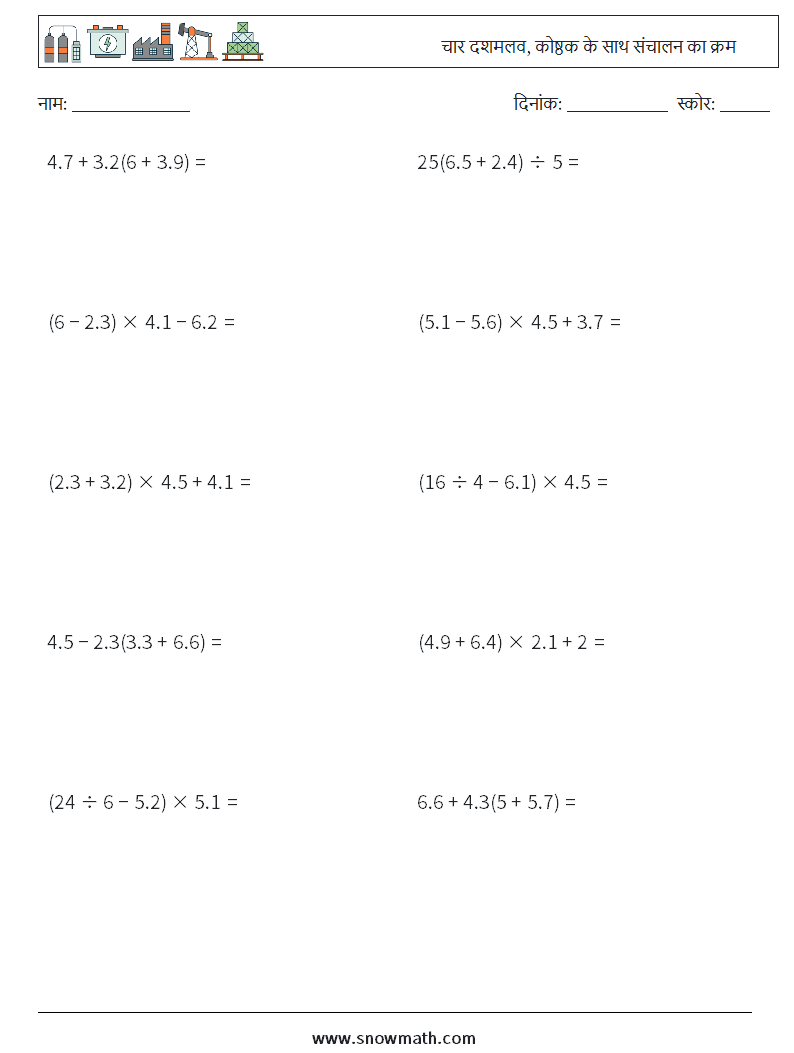 (10) चार दशमलव, कोष्ठक के साथ संचालन का क्रम गणित कार्यपत्रक 10