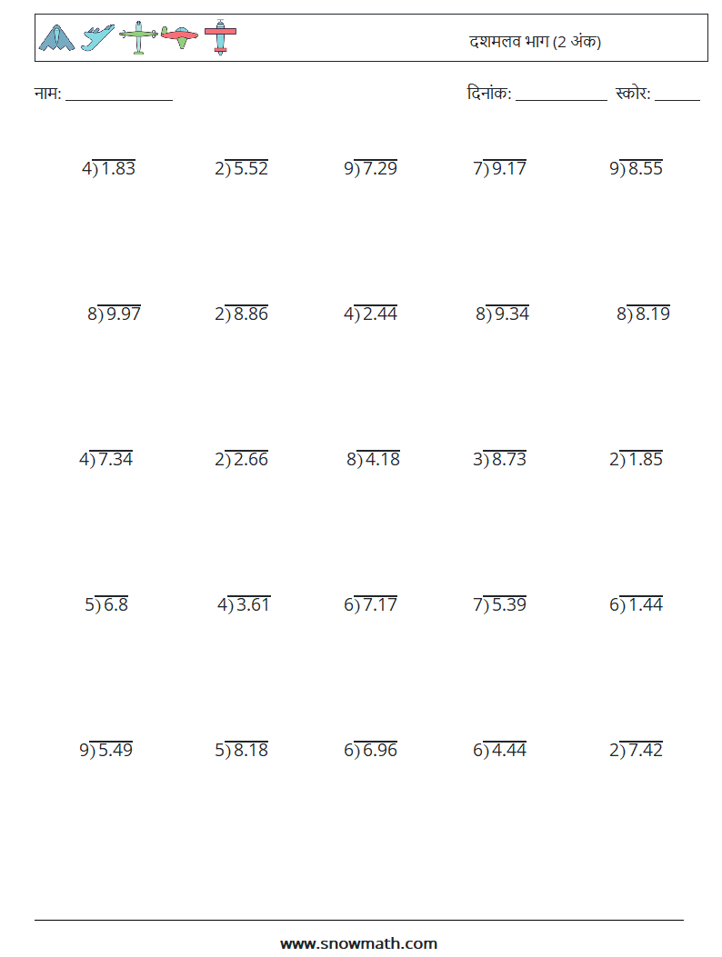 (25) दशमलव भाग (2 अंक) गणित कार्यपत्रक 10