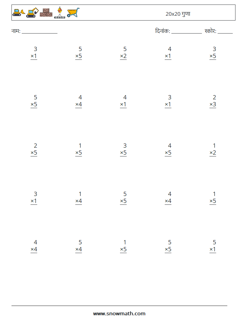 (25) 20x20 गुणा गणित कार्यपत्रक 5
