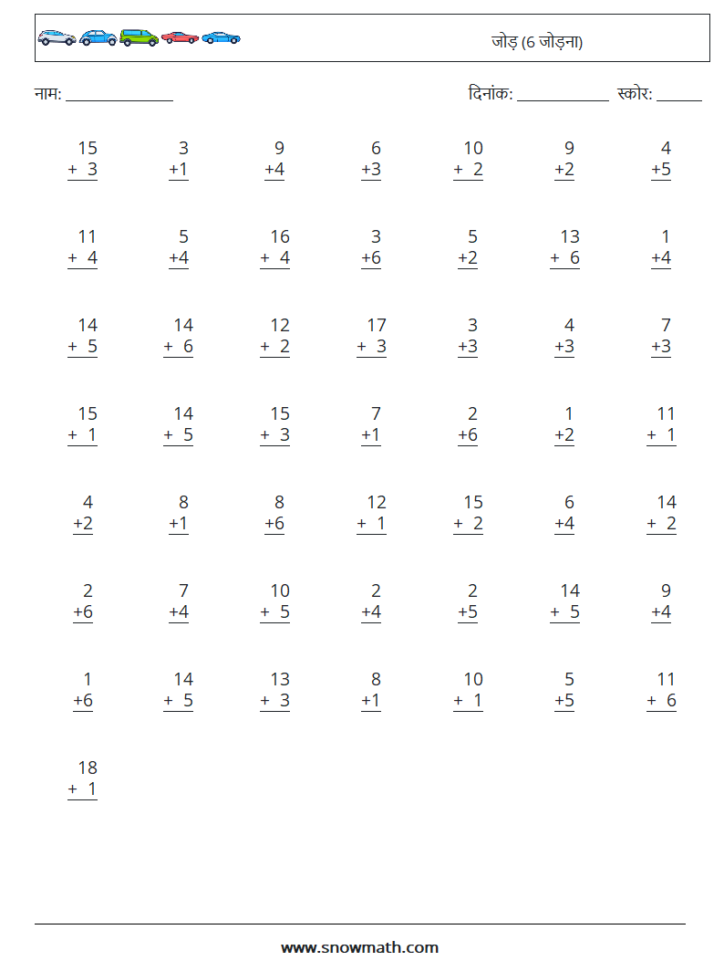 (50) जोड़ (6 जोड़ना) गणित कार्यपत्रक 13