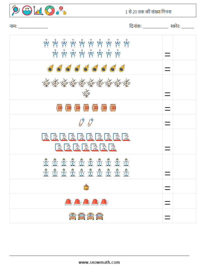 1 से 20 तक की संख्या गिनना गणित कार्यपत्रक 10