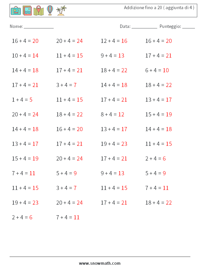 (50) Addizione fino a 20 ( aggiunta di 4 )