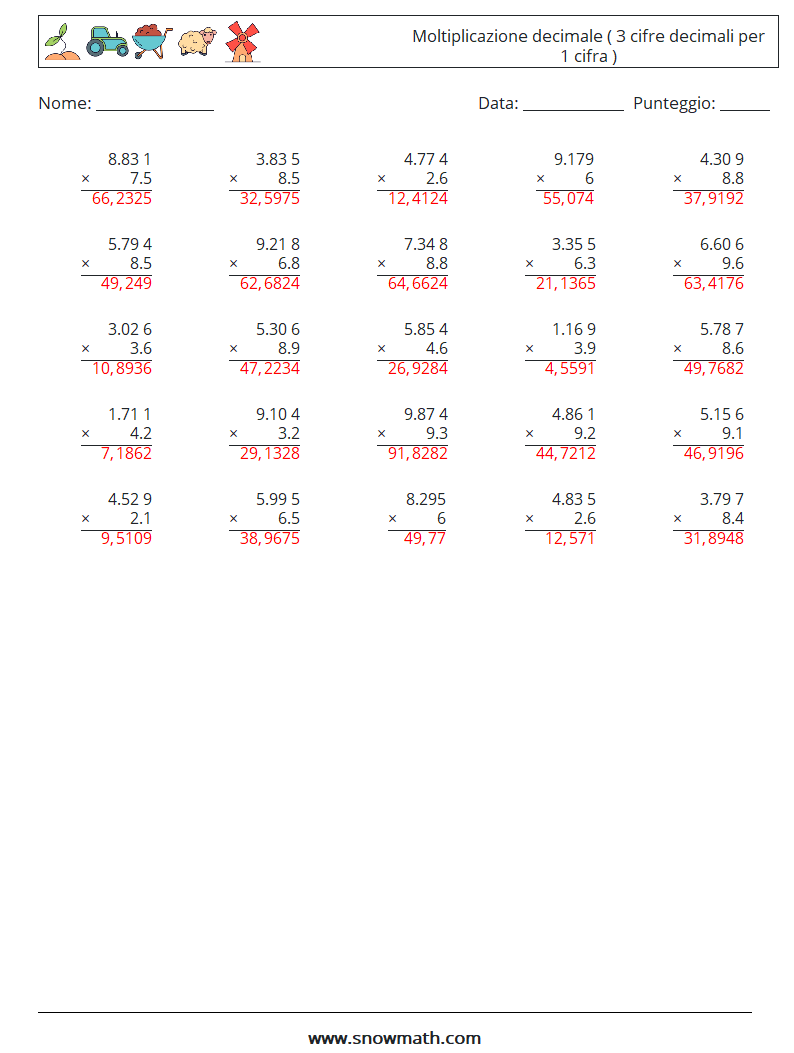 (25) Moltiplicazione decimale ( 3 cifre decimali per 1 cifra )