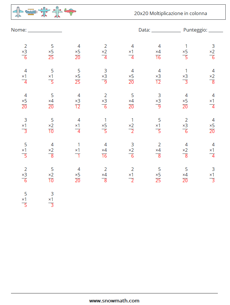 (50) 20x20 Moltiplicazione in colonna