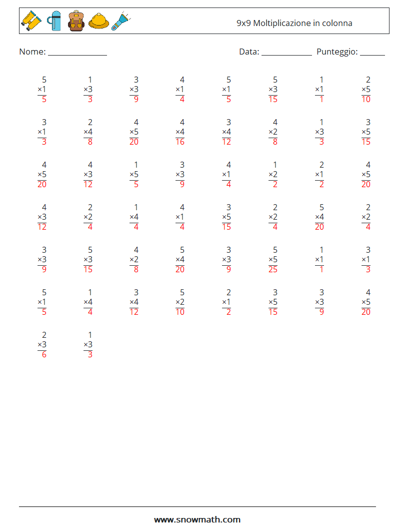 (50) 9x9 Moltiplicazione in colonna