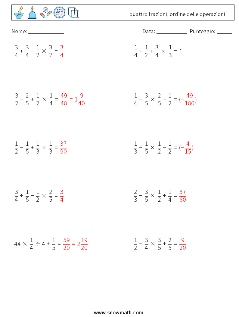 (10) quattro frazioni, ordine delle operazioni