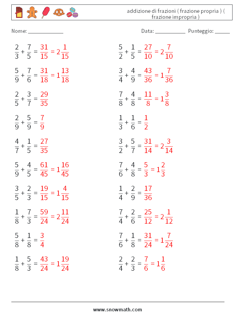(20) addizione di frazioni ( frazione propria ) ( frazione impropria )