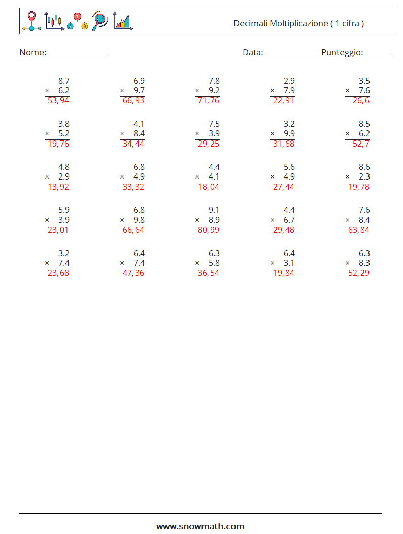 (25) Decimali Moltiplicazione ( 1 cifra )
