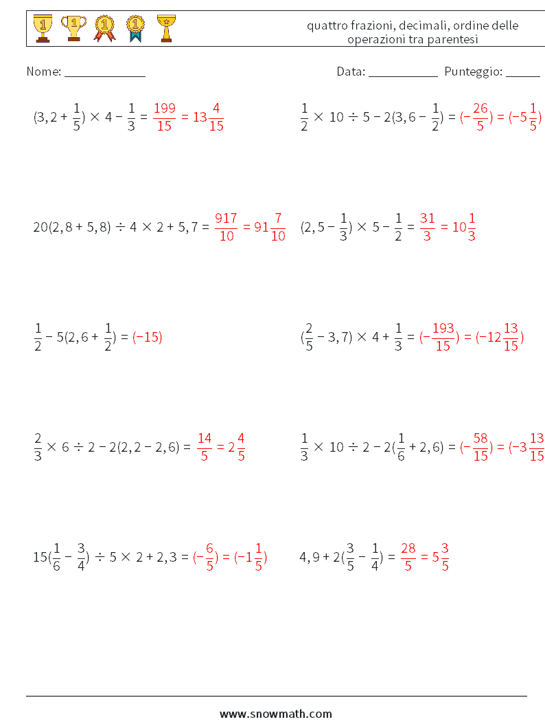 (10) quattro frazioni, decimali, ordine delle operazioni tra parentesi