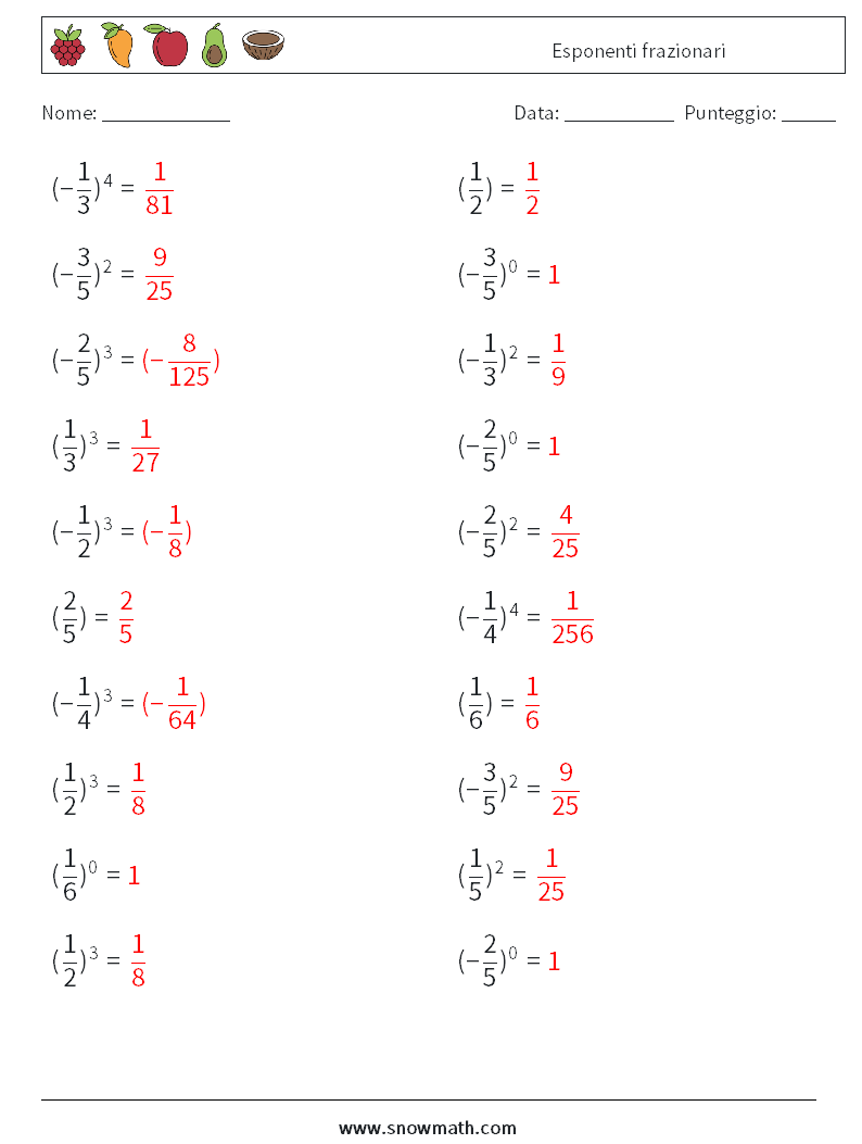 Fogli di lavoro di matematica 4