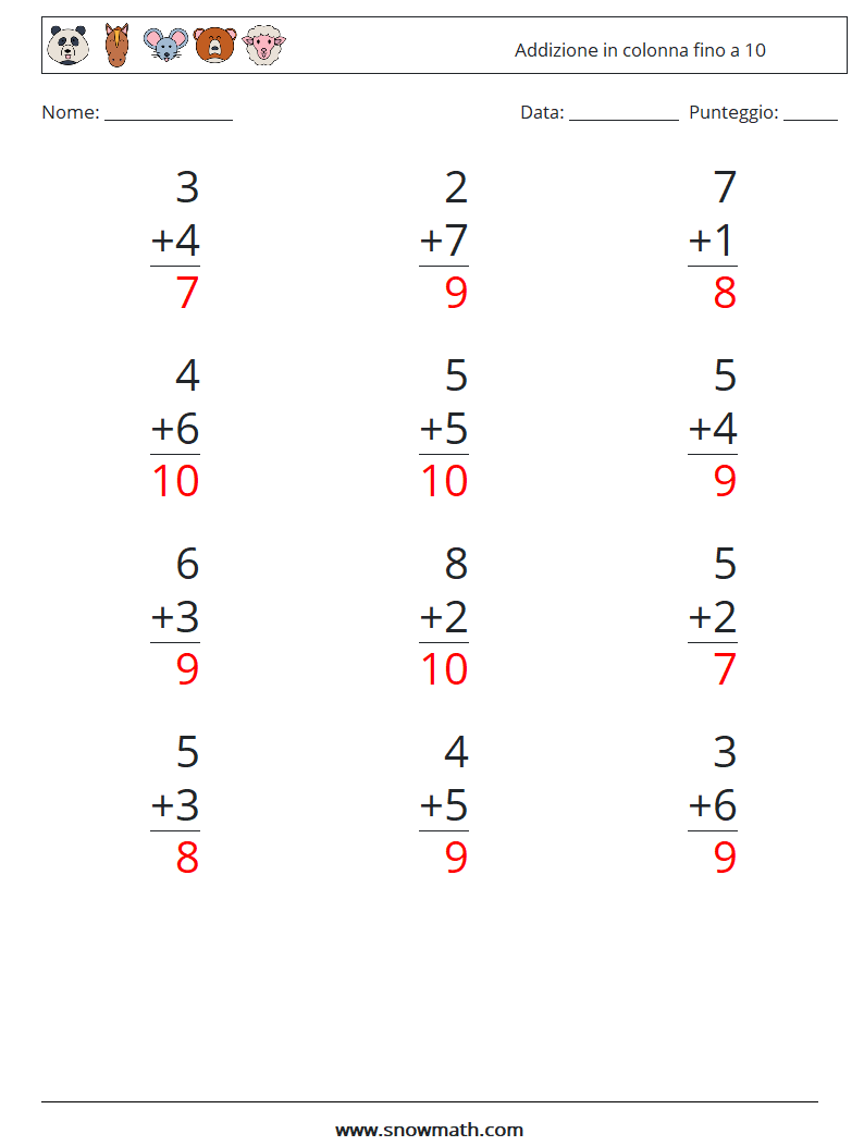 (12) Addizione in colonna fino a 10