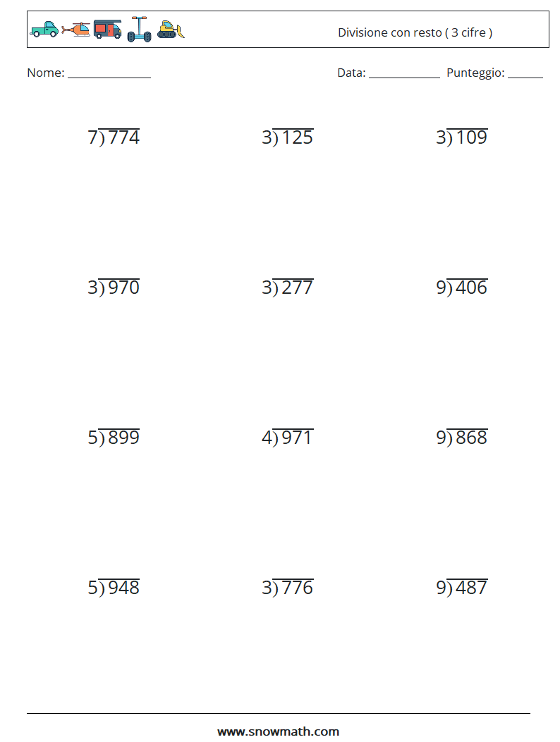 (12) Divisione con resto ( 3 cifre ) Fogli di lavoro di matematica 3