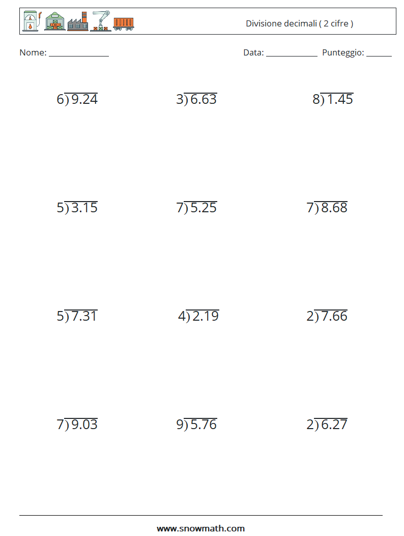 (12) Divisione decimali ( 2 cifre ) Fogli di lavoro di matematica 3