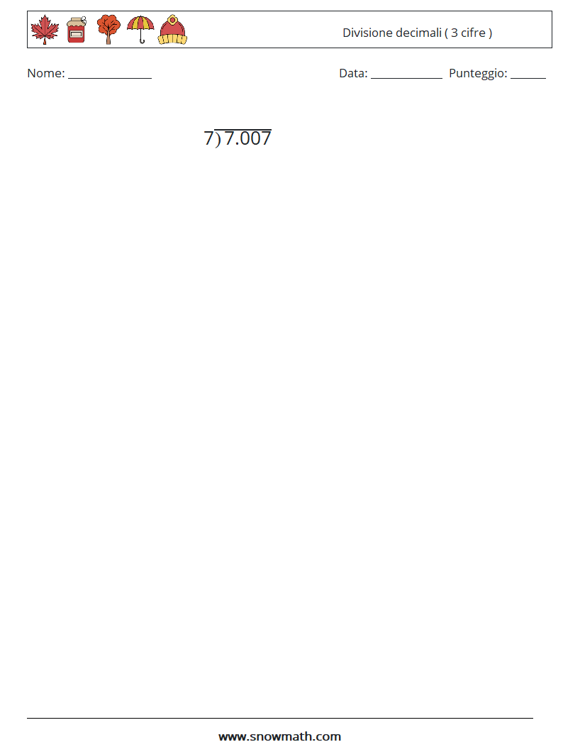 (12) Divisione decimali ( 3 cifre ) Fogli di lavoro di matematica 7