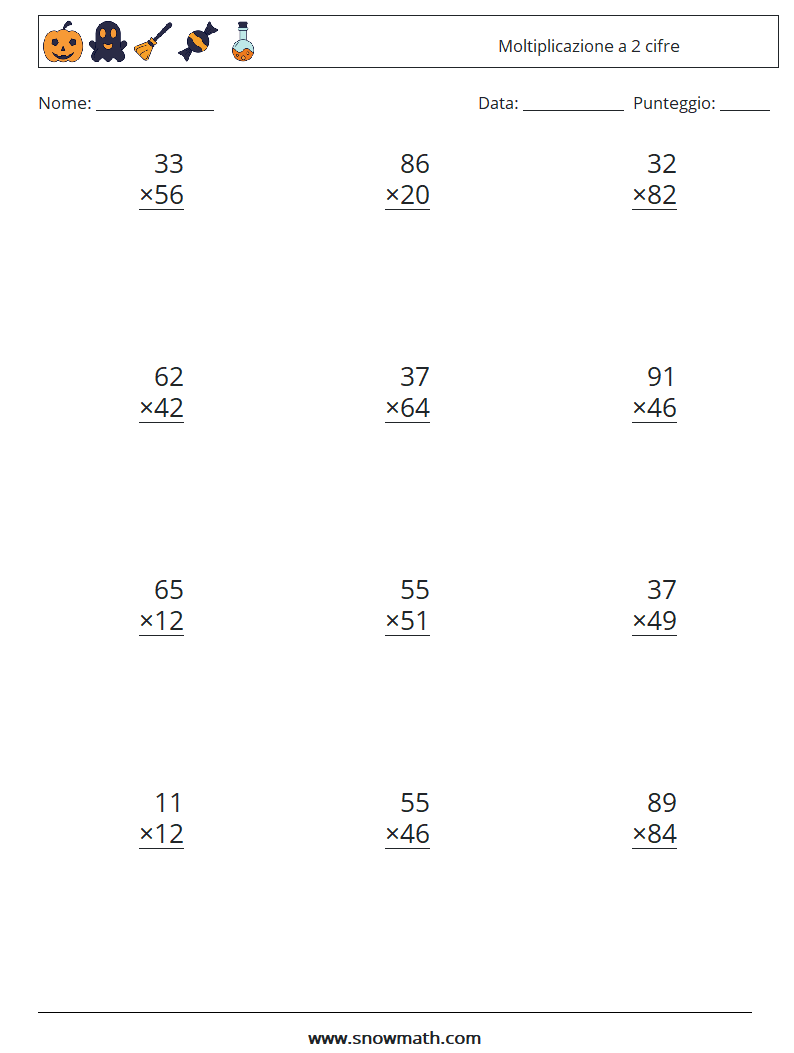 (12) Moltiplicazione a 2 cifre Fogli di lavoro di matematica 1