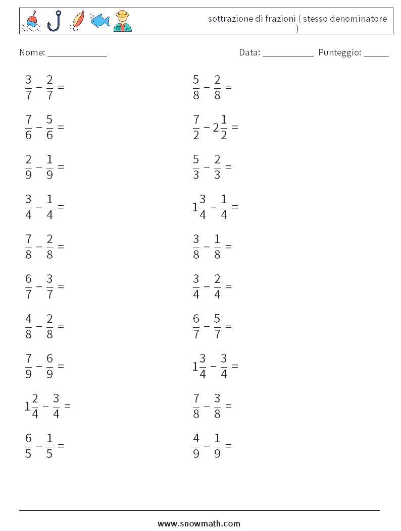 (20) sottrazione di frazioni ( stesso denominatore ) Fogli di lavoro di matematica 5