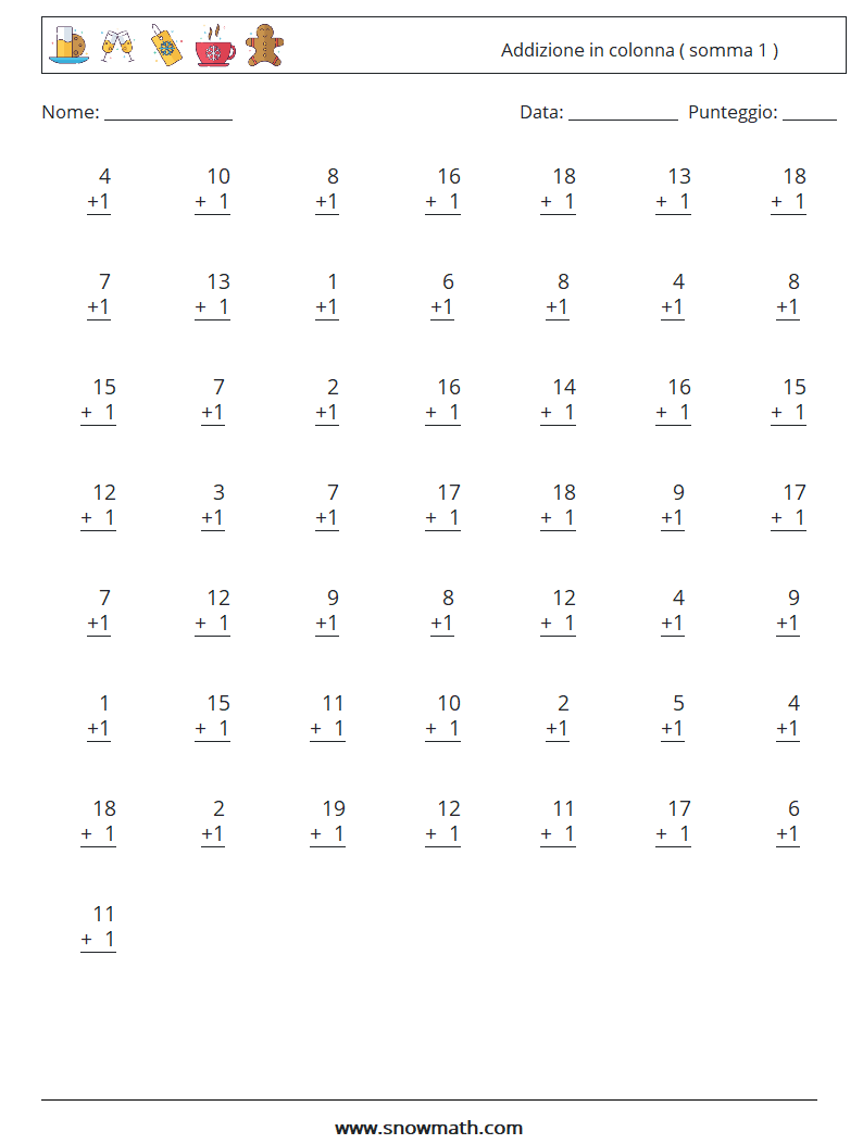 (50) Addizione in colonna ( somma 1 ) Fogli di lavoro di matematica 1