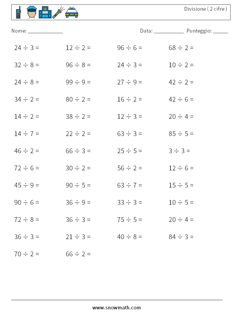 (50) Divisione ( 2 cifre ) Fogli di lavoro di matematica 3