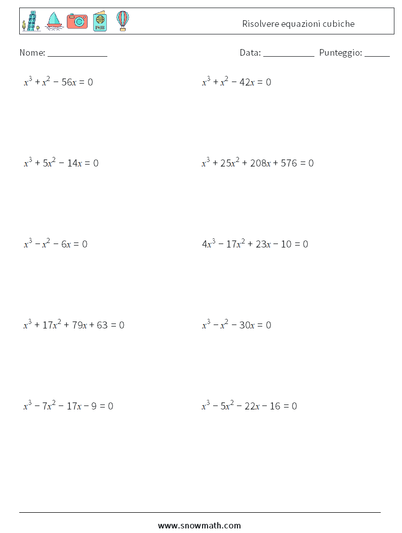 Risolvere equazioni cubiche Fogli di lavoro di matematica 2