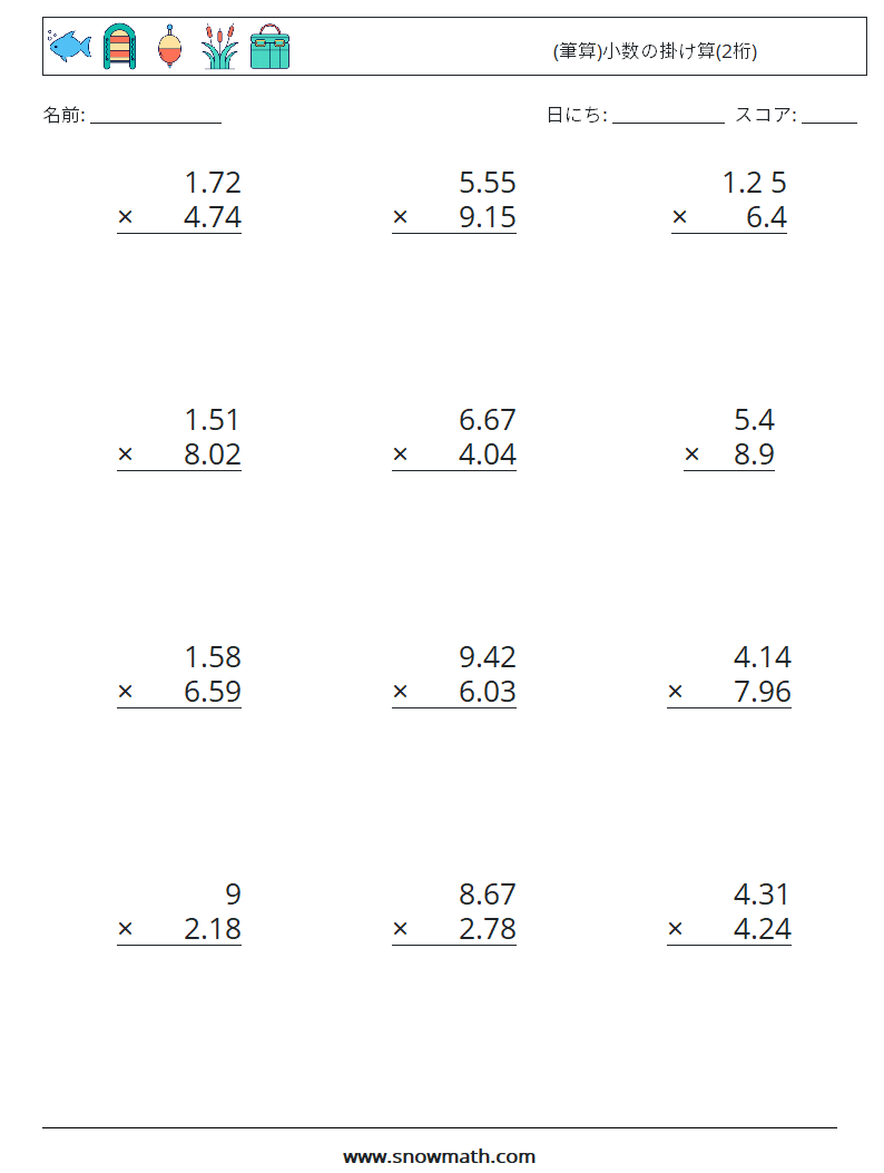 (25) (筆算)小数の掛け算(3桁の小数と整数)