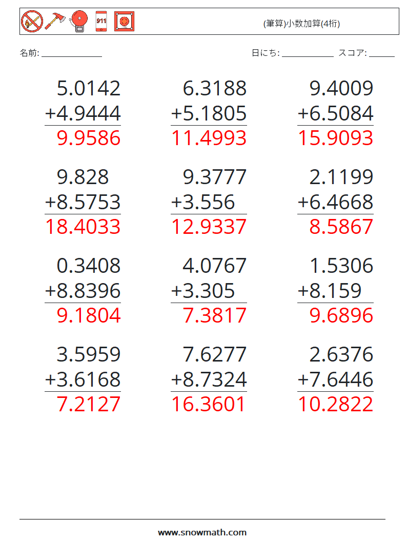 (12) (筆算)小数加算(4桁)