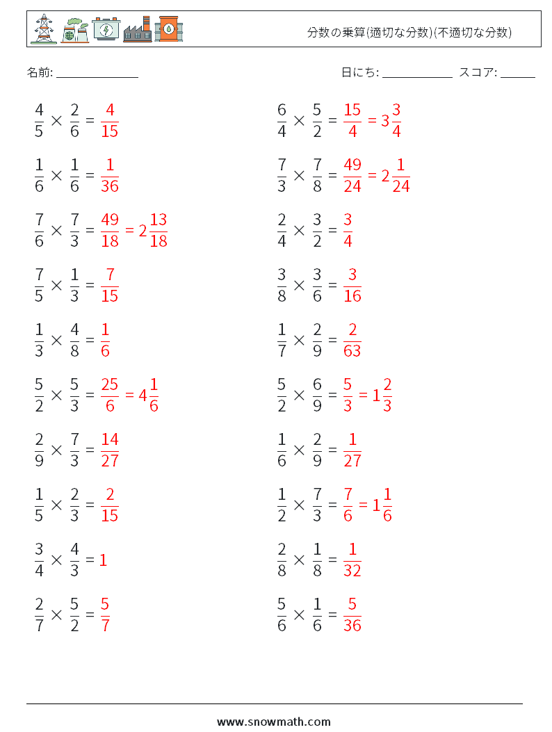 (20) 分数の乗算(適切な分数)(不適切な分数)