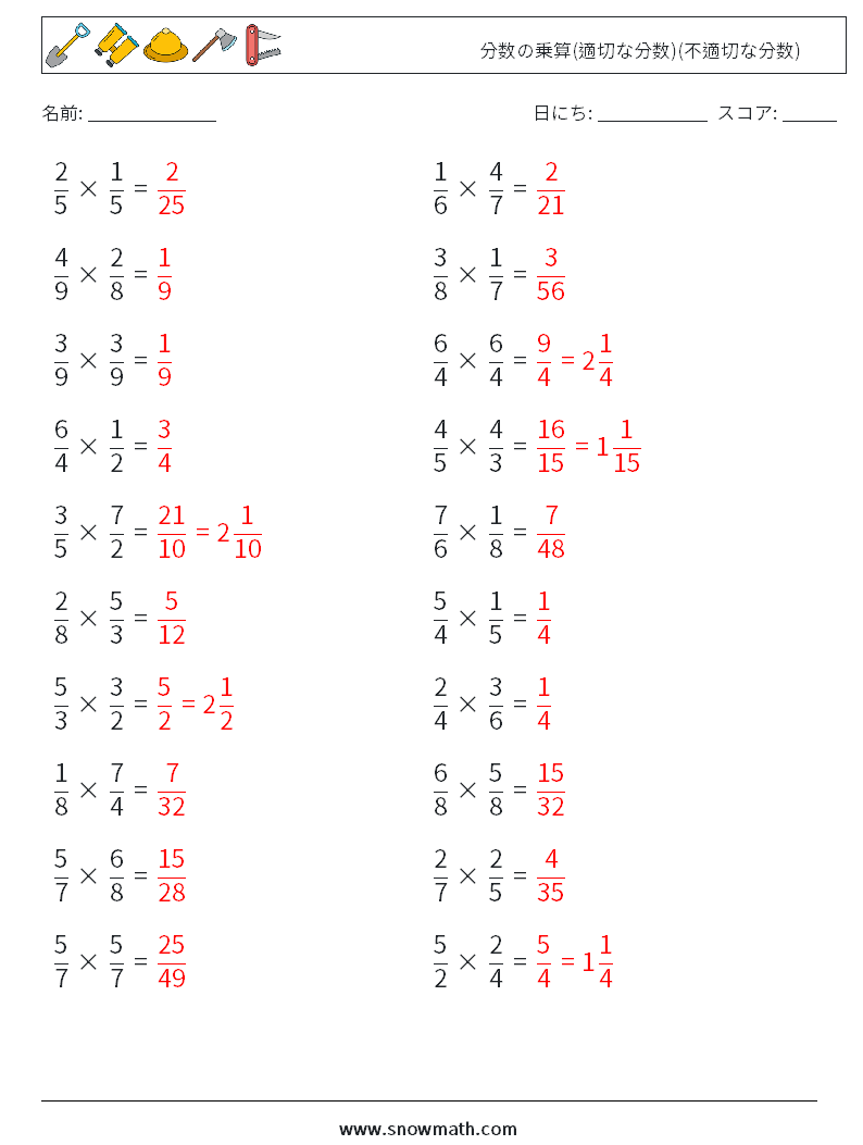 (20) 分数の乗算(適切な分数)(不適切な分数)