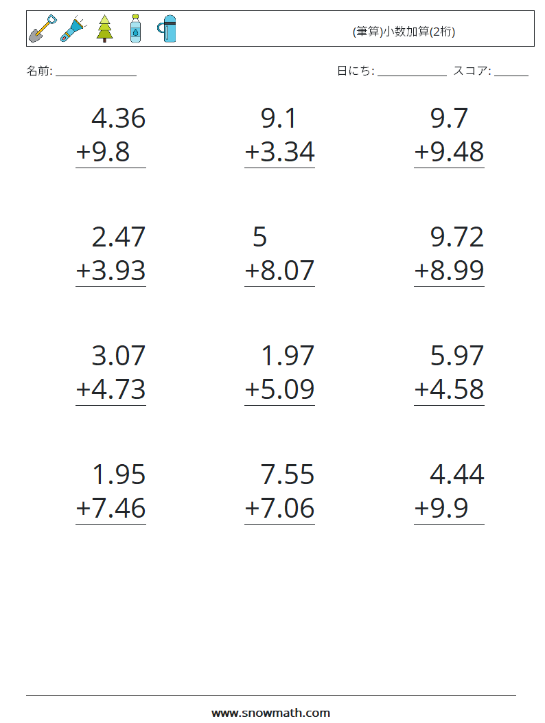 (12) (筆算)小数加算(2桁) 数学ワークシート 10