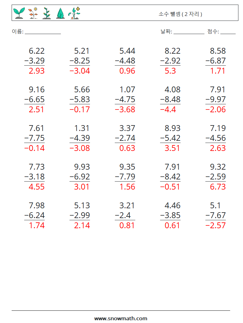 (25) 소수 뺄셈 ( 2 자리 )