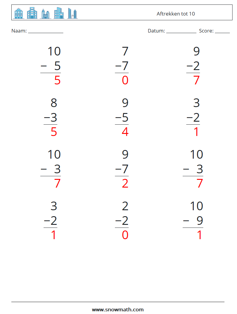 (12) Aftrekken tot 10