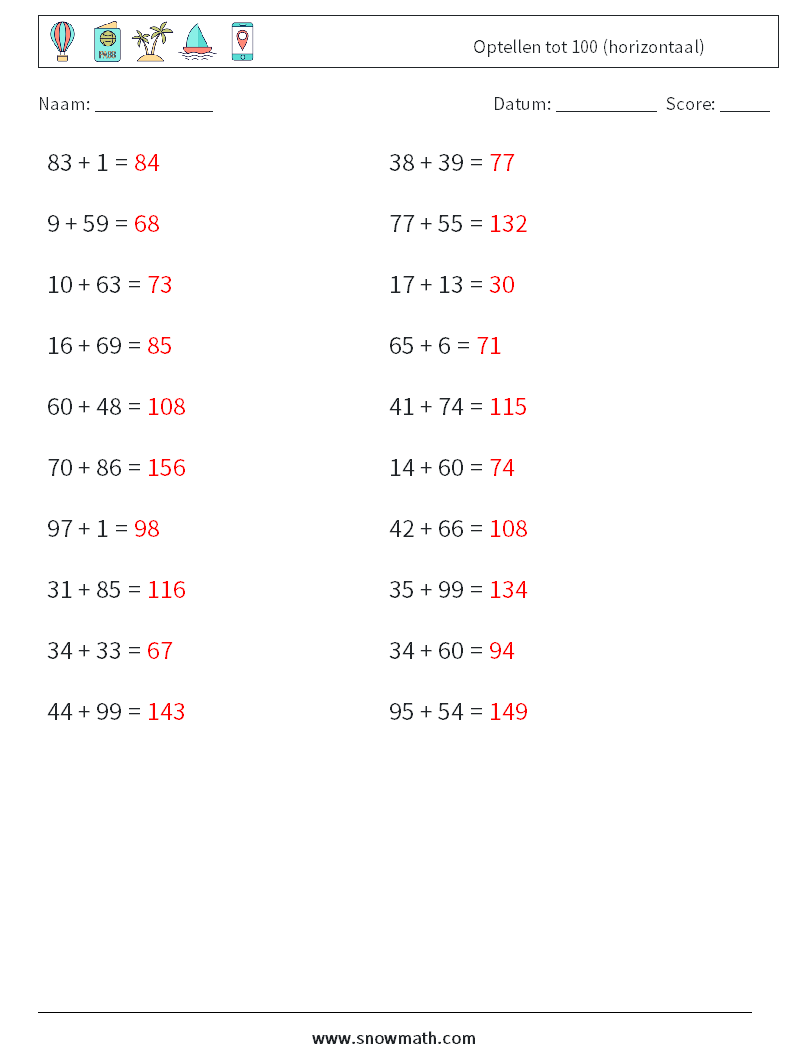 (20) Optellen tot 100 (horizontaal)