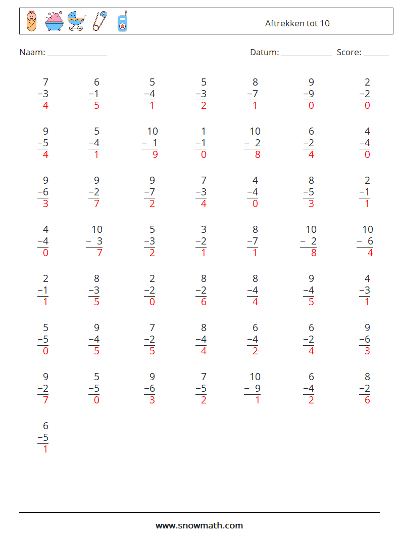 (50) Aftrekken tot 10