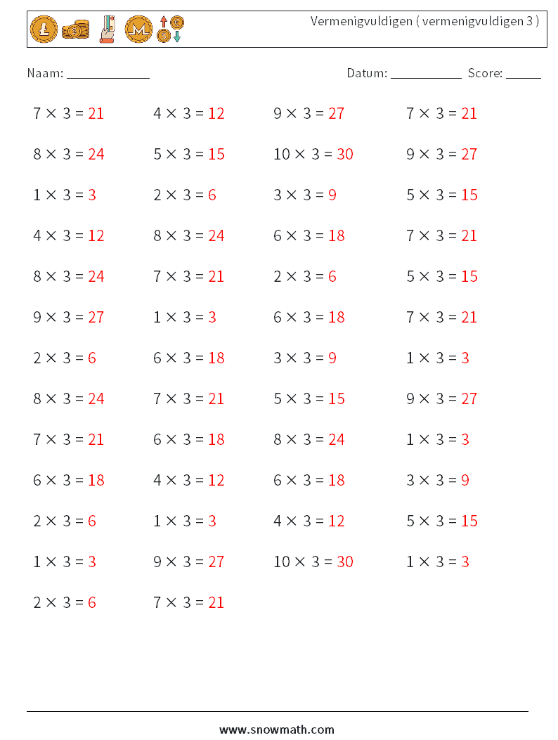 (50) Vermenigvuldigen ( vermenigvuldigen 3 )