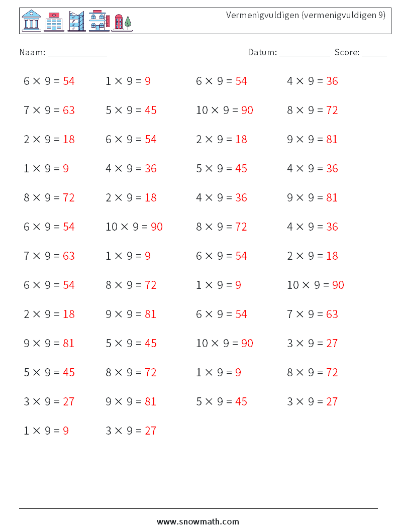 (50) Vermenigvuldigen (vermenigvuldigen 9)