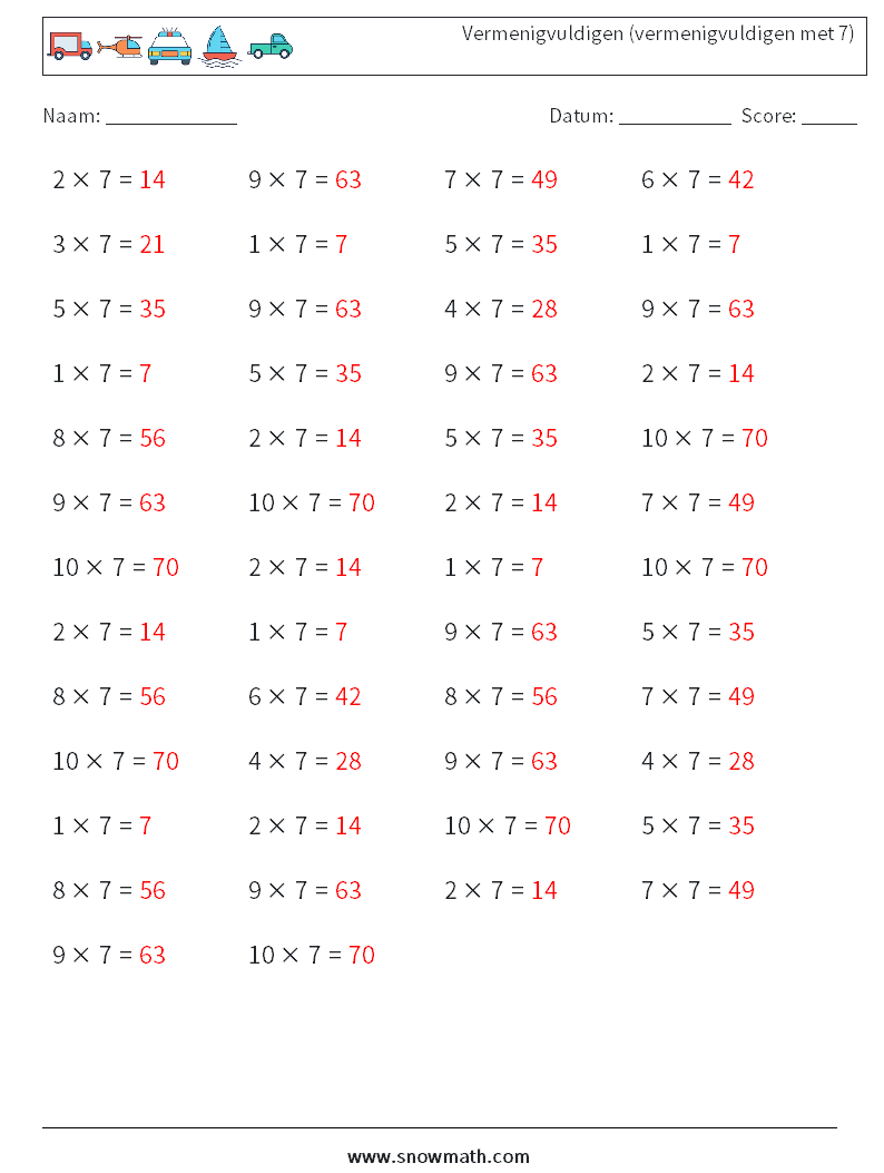 (50) Vermenigvuldigen (vermenigvuldigen met 7)